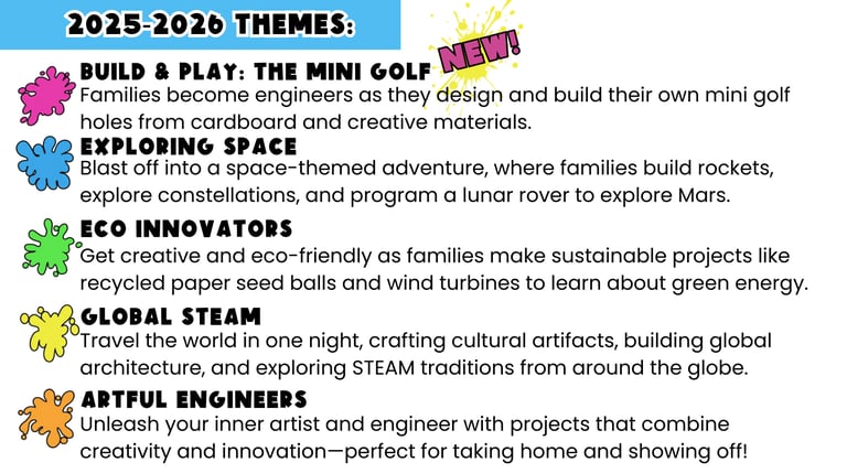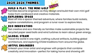 Our STEAM Together Interactive Family Nights bring the whole community together to design, test, tweak and repeat!